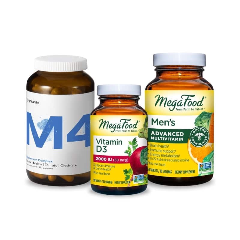 Baspaket Man är ett paket för män under 55 år. Det innehåller en riktigt bra whole food multivitaminmineral speciellt framtagen för män, D-vitamin och magnesium.