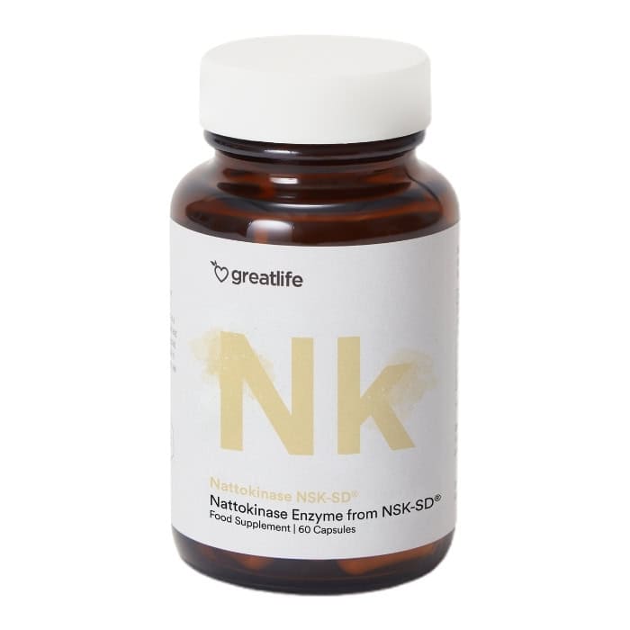 Nattokinase NSK-SD® från Greatlife är Nattokinase av högsta kvalitet. Det innehåller NSK-SD®, den mest välstuderade och patenterade formen av nattokinase, framställd genom fermentering av icke-GMO-sojabönor med en specifik Bacillus subtilis natto-stam. Nattokinase är ett kraftfullt fibrinolytiskt enzym som hjälper till att bryta ner fibrin, ett protein som i överskott kan påverka blodcirkulationen negativt. Produkten är ren, fri från tillsatser, gifter och GMO.
