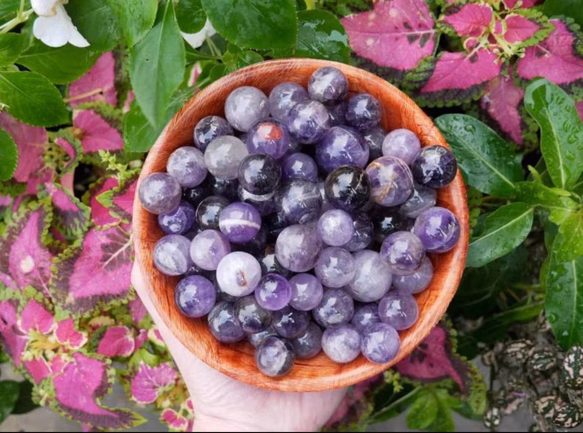 Ametist är en kraftfull och skyddande sten. Det lindrar stress och belastning, lugnar irritabilitet, balanserar humörsvängningar, skingrar ilska, rasa, rädsla, och ångest. Det lindrar också sorg och sorg, och löser upp negativitet. Ametist aktiverar andlig medvetenhet, öppnar intuition och förbättrar psykiska förmågor. Det är bra för ajna chakra (sjätte). Den har starka helande och renande krafter och uppmuntrar osjälviskhet. Säljs styckvis.